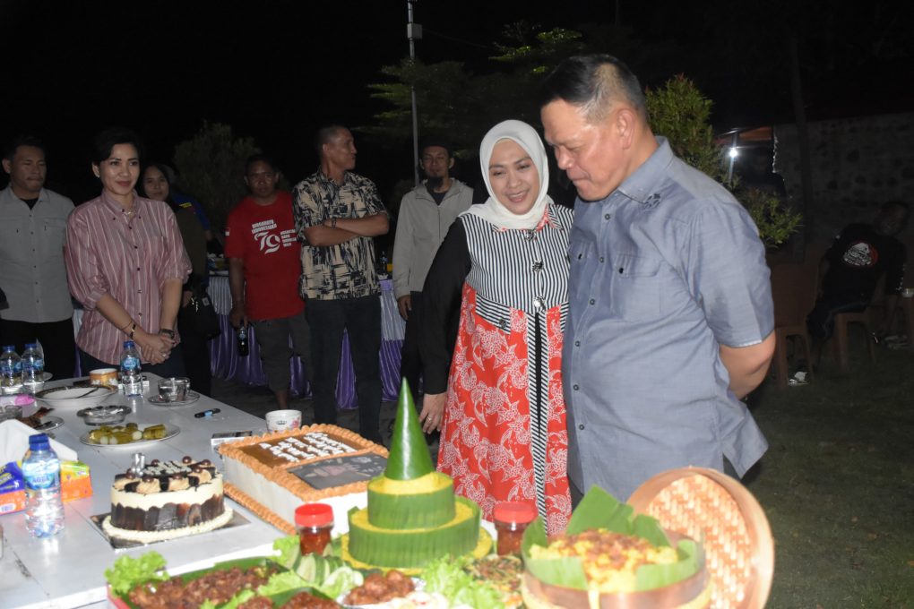 Kue ulang tahun dengan lilin menyala yg dibawa Lia Abast dari media digital sulteng.antaranews.com, langsung ditiup oleh Kapolda Sulteng Irjen Agus Nugroho.