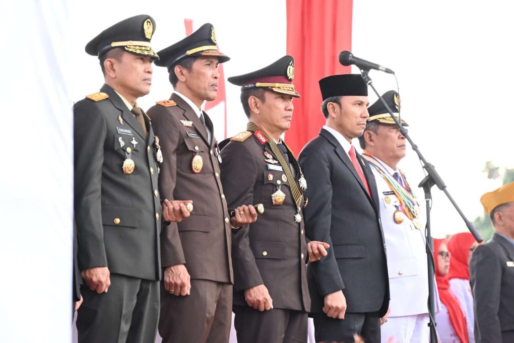 Dalam kesempatan tersebut Kapolda Jambi turut menyampaikan ucapan Dirgahayu Republik Indonesia ke-79 dan menyampaikan tema perayaan HUT Republik Indonesia ke-79 tahun 2024 ini yakni “Nusantara Baru Indonesia Maju”. Dikatakannya bahwa tema ini mengajak seluruh masyarakat untuk terus bersatu dan berupaya memajukan negeri.