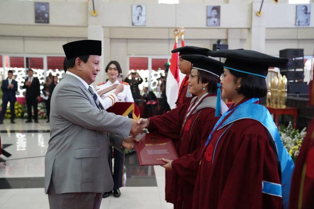 Bogor – Menteri Pertahanan RI Prabowo Subianto menghadiri wisuda 425 Mahasiswa Unhan RI dari Program Pendidikan Diploma (D3), Sarjana (S1), Magister (S2), dan Doktor (S3) untuk Tahun Akademik 2024, di Gedung Aula Merah Putih (AMP), Kampus Utama Unhan RI, Sentul-Bogor, Jawa Barat, Sabtu (24/8/2024).