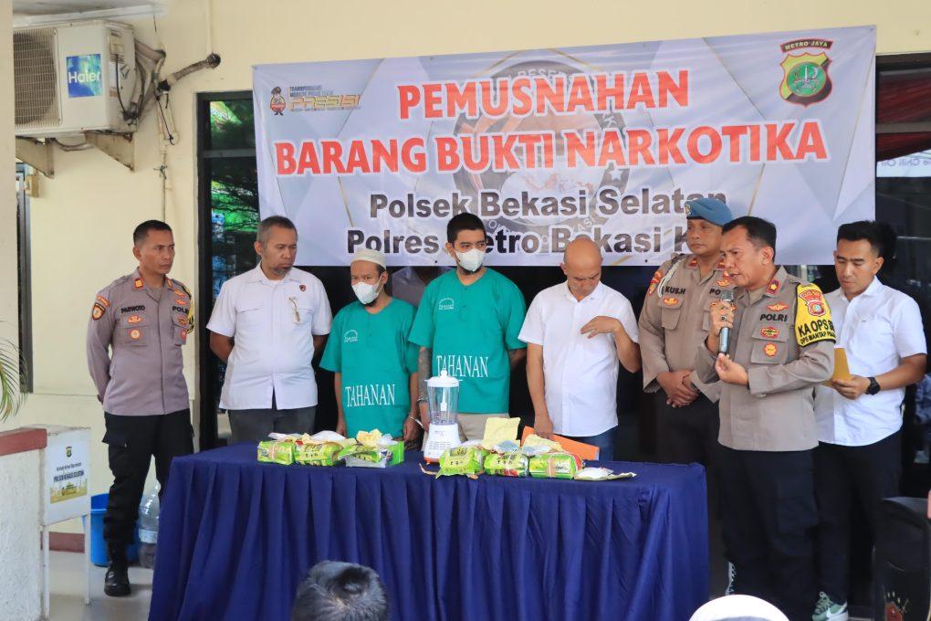 Kapolsek Bekasi Selatan Kompol Untung Riswaji SH.MH.MM didampingi Wakapolsek AKP Parwoto dan Kanit Reskrim AKP Imam Prakoso menjelaskan bahwa pemusnahan tersebut dilakukan setelah ada penetapan dari Pengadilan Negeri Kota Bekasi. Uji narkotika dilakukan oleh Puslabfor Mabes Polri disaksikan Kapolsek dan undangan.