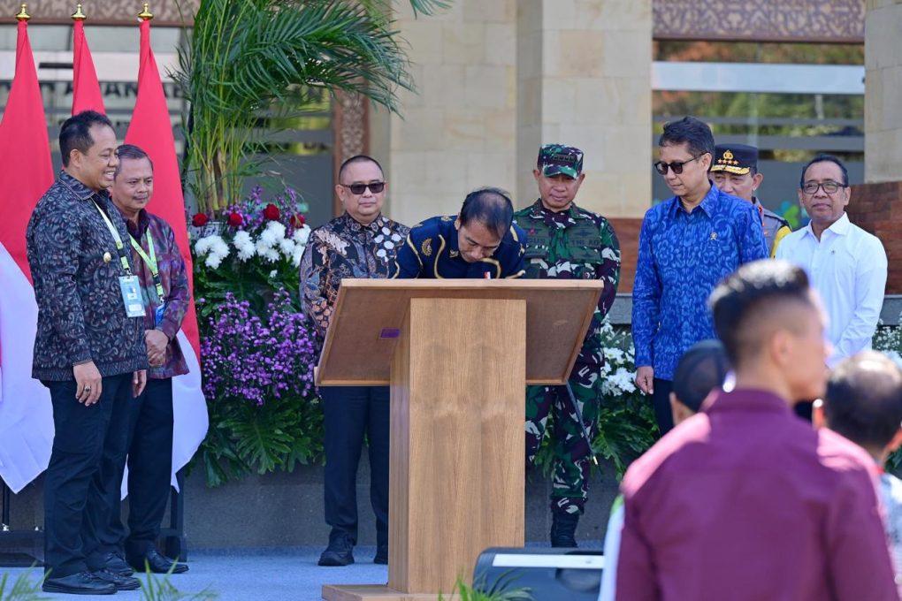 REPORTASE JAKARTA(Puspen TNI). PanglimaTNI Jenderal TNI Agus Subiyanto,S.E.,M.Si., mendampingi Presiden Joko Widodo melakukan peresmian Gedung Pelayanan Kesehatan Ibu dan Anak Rumah Sakit (RS) Ngoerah, Kota Denpasar, Bali, Senin (2/09/2024).