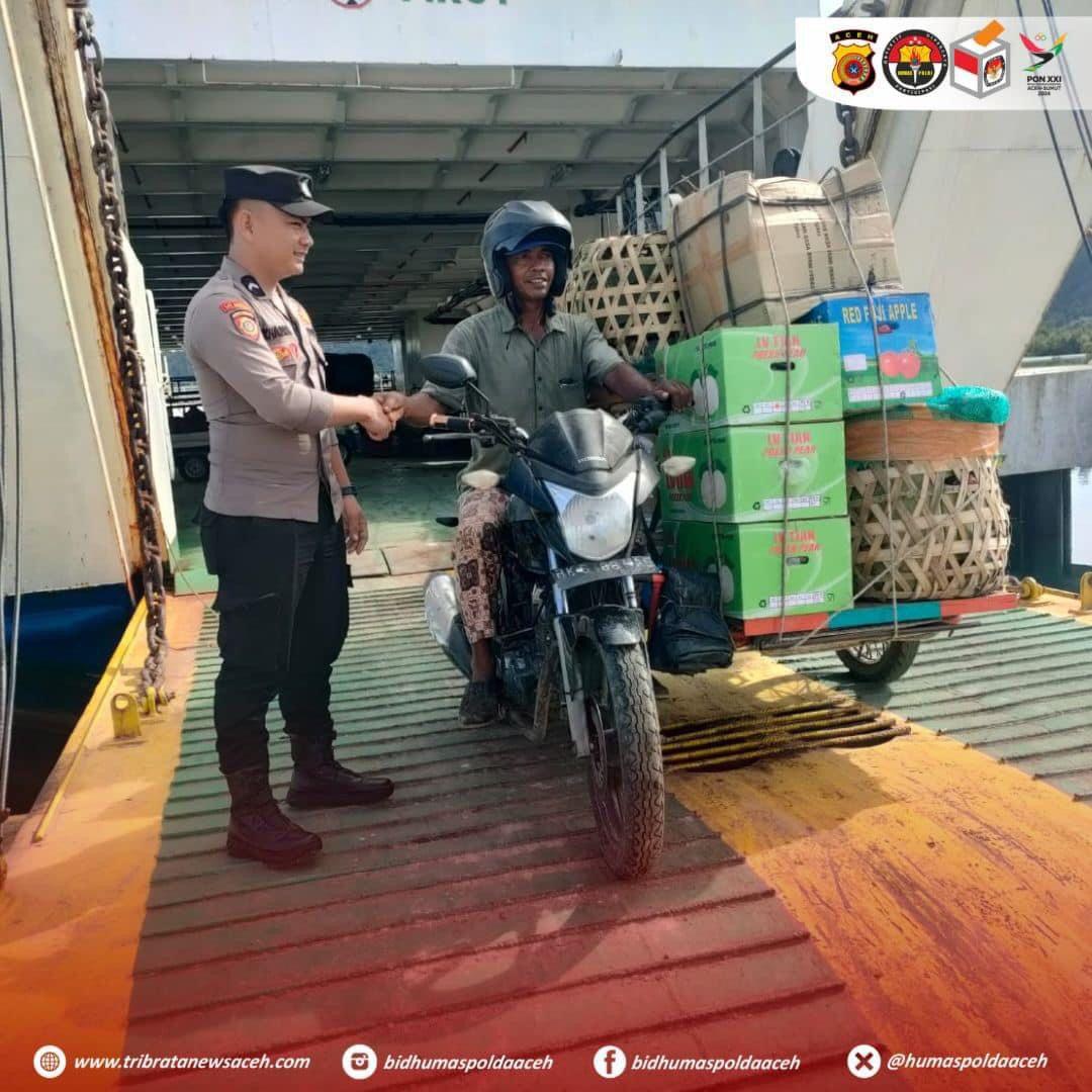 Sinabang – Personel Kepolisian Kawasan Pelabuhan (KP-3) Polres Simeulue melaksanakan pengamanan kedatangan Kapal Motor Penumpang (KMP) Aceh Hebat 3 yang berlayar dari Singkil menuju Sinabang, Kamis 5 September 2024.
