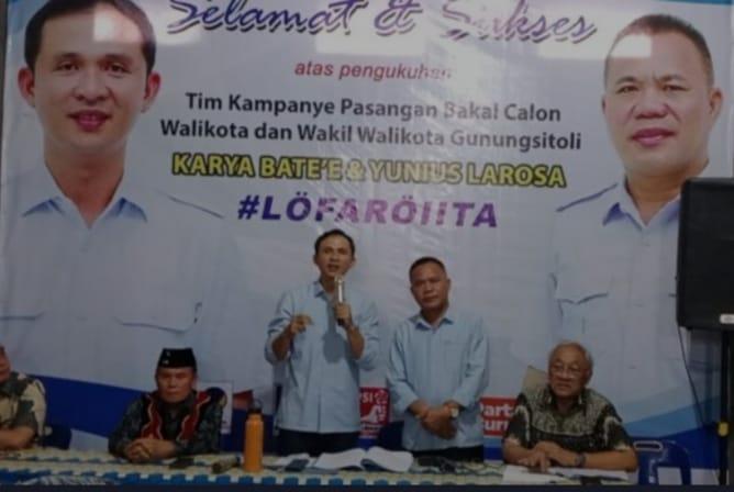 Calon Wali Kota Karya Batee juga memberikan sambutan, menjelaskan visi dan misi pasangan tersebut. Karya menekankan bahwa “Gunungsitoli Unggul” berarti menjadi cakap, baik, kuat, dan lebih tinggi dibandingkan kota lain di Indonesia. Ia menegaskan bahwa Lofaroi Ita adalah semangat untuk bergandengan tangan membangun Gunungsitoli menuju masa depan yang lebih baik.