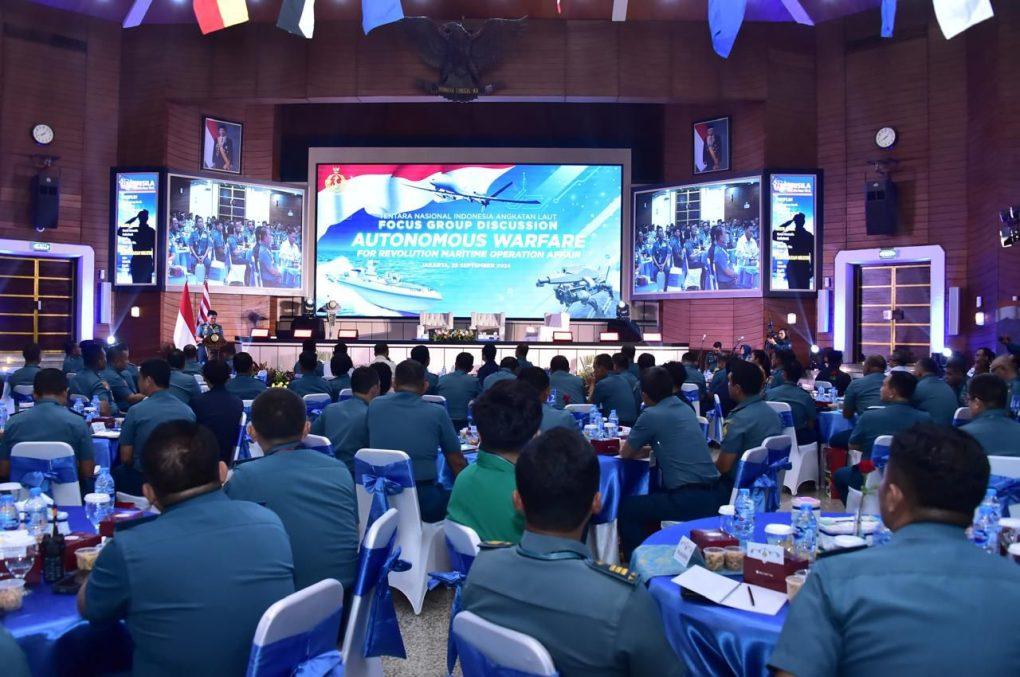 Jakarta, 25 September 2024,—– TNI AL berkomitmen dalam meningkatkan kepedulian terhadap perkembangan teknologi otonom saat ini, Kepala Staf Angkatan Laut (Kasal) Laksamana TNI Dr. Muhammad Ali membuka acara Focus Group Discussion (FGD) Autonomous Warfare For Revolution Maritime Operation Affair bertempat di Auditorium Denma Mabesal, Cilangkap, Jakarta Timur. Rabu (25/09).