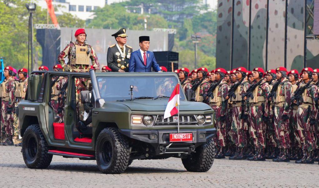 REPORTASE JAKARTA(Puspen TNI). Panglima TNI Jenderal TNI Agus Subiyanto bersama Kasad Jenderal TNI Maruli Simanjuntak, Kasal Laksamana TNI Muhammad Ali dan Kasau Marsekal TNI Mohamad Tonny Harjono mendampingi Presiden RI Joko Widodo sebagai Inspektur Upacara pada Upacara Peringatan HUT Ke-79 TNI Tahun 2024, bertempat di Lapangan Silang Monas, Jakarta Pusat, Sabtu (5/10/2024).