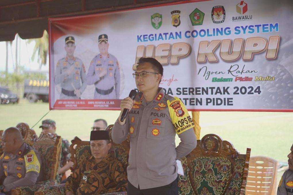 REPORTASE JAKARTASigli – Kapolres Pidie AKBP Jaka Mulyana, SIK, MIK,. mengajak segenap lapisan masyarakat kecamatan Kembang Tanjung untuk menciptakan situasi kamtibmas yang kondusif selama masa kampanye dan tahapan Pilkada serentak 2024 di Kabupaten Pidie.