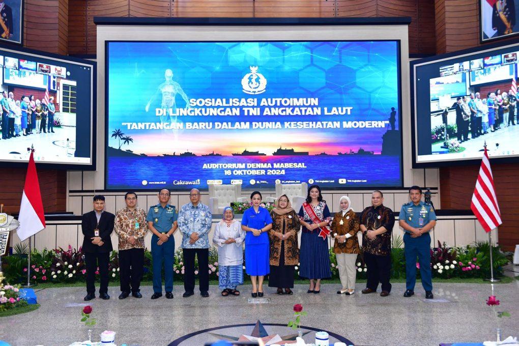 Jakarta, 16 Oktober 2024 — TNI AL berkomitmen dalam meningkatkan kepedulian personelnya terhadap Autoimun, seperti dalam hal ini Dinas Kesehatan TNI AL (Diskesal) bersama Marisza Cardoba Foundation (MCF) menyelenggarakan acara Sosialisasi Autoimun di Lingkungan TNI AL yang dihadiri oleh Asisten Personalia Kepala Staf Angkatan Laut (Aspers Kasal) Laksda TNI Rony Saleh mewakili Kasal Laksamana TNI Dr. Muhammad Ali, bertempat di Auditorium Denma Mabesal, Cilangkap, Jakarta Timur. Rabu (16/10). Acara yang mengambil tema “Tantangan Baru Dalam Dunia Kesehatan Modern” ini diikuti sebanyak 400 peserta baik secara tatap muka oleh Prajurit TNI AL dan PNS wilayah Mabesal, Pengurus Pusat (PP) Jalasenastri serta seluruh Fasilitas Kesehatan (Faskes) TNI AL di seluruh Indonesia melalui Video Conference (Vicon) oleh. Kegiatan tersebut dilaksanakan dengan tujuan untuk memberikan pemahaman kepada seluruh personel TNI AL tentang pentingnya penerapan pola hidup sehat, tidak hanya sebagai upaya mencegah Autoimun tetapi juga sebagai cara untuk meningkatkan kualitas hidup. Acara yang digelar TNI bekerjasama dengan MCF ini berjalan dengan lancar. MCF merupakan sebuah organisasi nirlaba yang didirikan oleh Marisza Cardoba, yang merupakan Orang Dengan Autoimun (ODAi) dan tokoh medis senior Prof. Dr. dr. Aru W. Sudoyo, KHOM pada tahun 2012, Organisasi ini bertujuan untuk mendukung ODAi di seluruh Indonesia, serta mendorong peningkatan kualitas kesehatan masyarakat Indonesia melalui penerapan Lima Dasar Hidup Sehat (LDHS) yaitu Gaya Hidup Sehat (makanan bebas 5P), Aktif Mandiri (olahraga 30 menit sehari, menanam makanan sendiri), Pengendalian Stress (ibadah, komunikasi positif), Terus Belajar (mengetahui informasi obat) dan Hidup Positif (bekerja cerdas, tersenyum setiap saat). Prof. Dr. dr. Aru W. Sudoyo, KHOM dalam sambutannya menyampaikan Autoimun merupakan kondisi dimana sistem kekebalan tubuh tidak dapat membedakan kawan dan lawan, seperti reaksi terhadap gaya hidup dan lingkungan. Sementara itu, Kasal dalam sambutan tertulis yang disampaikan oleh Aspers Kasal menjelaskan bahwa penyakit Autoimun merupakan tantangan yang tidak boleh kita pandang sebelah mata. Dengan prevalensi mencapai 10% dari populasi, Autoimun dapat menyerang organ-organ tubuh manusia dan sering kali mempengaruhi perempuan di usia produktif, yang seharusnya menjadi tulang punggung kemajuan bangsa. Lebih lanjut Kasal menegaskan, dalam upaya mewujudkan visi Indonesia Emas 2045, TNI AL membutuhkan generasi yang sehat dan produktif. “Saya mengajak kita semua untuk menerapkan pola hidup sehat sebagai langkah preventif yang sangat penting. Pola makan yang seimbang, aktivitas fisik yang teratur, dan manajemen stres yang baik adalah strategi yang ampuh untuk menjaga kesehatan seorang prajurit dalam melaksanakan tugas menjaga kedaulatan negara,” tegas Kasal. Pada kesempatan tersebut juga dilaksanakan Peluncuran Buku Digital “Keluarga Sehat TNI Angkatan Laut” oleh Aspers Kasal, Prof. Dr. dr. Aru W. Sudoyo, KHOM, Menteri Kesehatan Republik Indonesia (Menkes RI) diwakili oleh Plt. Direktur Jenderal Pencegahan dan Pengendalian Penyakit (P2P) Kemenkes RI, dr. Yudhi Pramono, MARS., dan Menteri Pemberdayaan Perempuan dan Perlindungan Anak Republik Indonesia diwakili oleh Asisten Deputi Pengarusutamaan Gender Bidang Politik dan Hukum, Dr. Iip Ilham Firman. Acara dilanjutkan dengan paparan dari dua narasumber kesehatan ternama yaitu Bidang Publikasi Ilmiah MCF Dr. dr. Stevent Sumantri, SpPD, K-AI, DAA, FINASIM., dengan materi Autoimun (Autoimunitas), dan Wakil Ketua MCF Dr. Rita Ramayulis, DCN, M.Kes dengan materi Peranan Pola Hidup Sehat (Pola Makan Sehat) Sebagai Strategi Ampuh Untuk Meningkatkan Kualitas Kesehatan Secara Menyeluruh. Acara ini moderator oleh Maya Yopie Sepang yang juga ODAi dan Duta Autoimun. (Red).