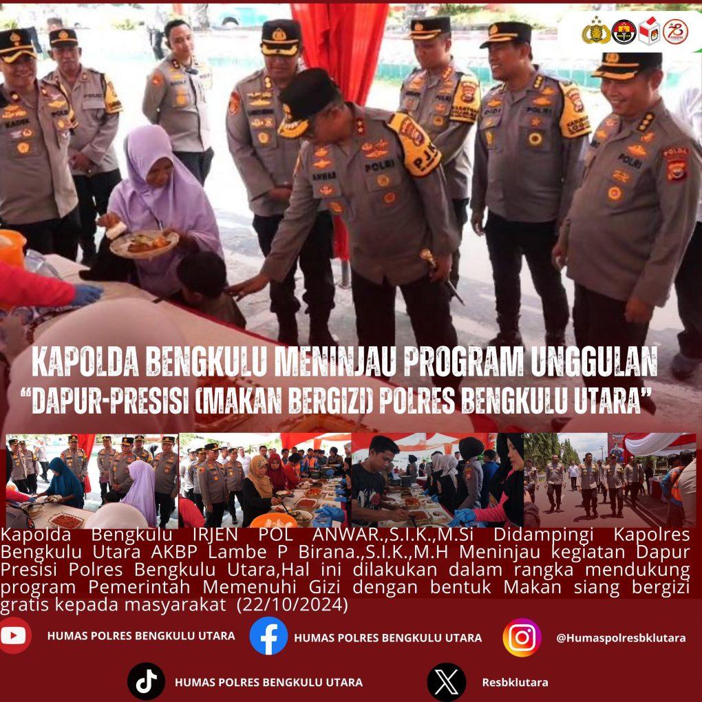 Pada Selasa (22/10/2024), Polres Bengkulu Utara menggelar kegiatan *Dapur Presisi*, sebuah inisiatif yang mendukung Program Presiden Prabowo Subianto dan Wakil Presiden Gibran Rakabuming Raka untuk memberikan makanan bergizi gratis bagi masyarakat yang membutuhkan.
