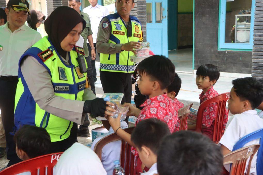 Dalam kegiatan ini, Polresta Cirebon bersama Pemda Kabupaten Cirebon juga memberikan makanan gizi gratis kepada anak-anak di SDN 3 Cipanas. Menu yang disediakan antara lain nasi dengan daging teriyaki, telur, sayuran, buah jeruk, susu, dan air mineral.