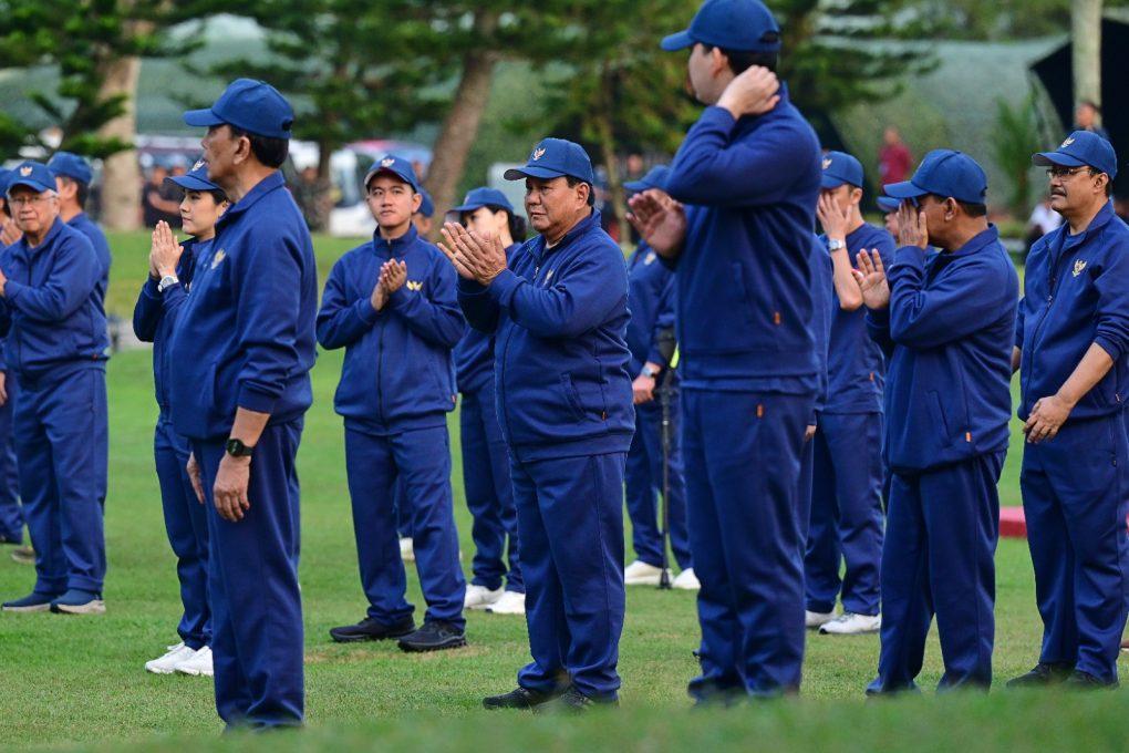 Hari terakhir Retreat Kabinet Merah Putih, Presiden Prabowo bersama anggota Kabinet Merah Putih memulai aktivitas dengan berolahraga dan senam pagi. Semua peserta kompak mengenakan seragam berwarna biru tua berlambang burung garuda di sisi kiri dan bertopi biru garuda.