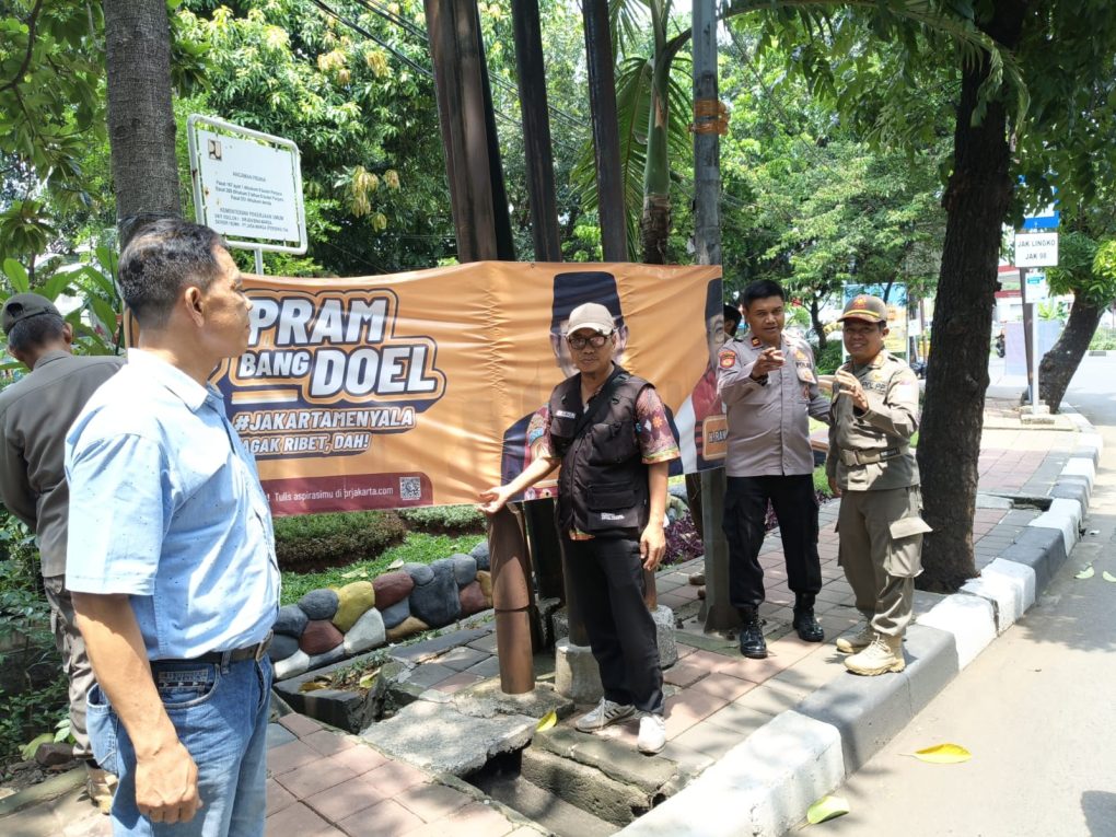 Reportasejakarta||Jakarta – Aparat gabungan melaksanakan kegiatan penertiban Alat Peraga Kampanye (APK) Pilkada DKI 2024 berupa spanduk yang dipasang di fasilitas pemerintah tepatnya di depan Kantor Polsubsektor Kelapa Dua Wetan Kec. Ciracas Jakarta Timur. Kamis (07/11/24).