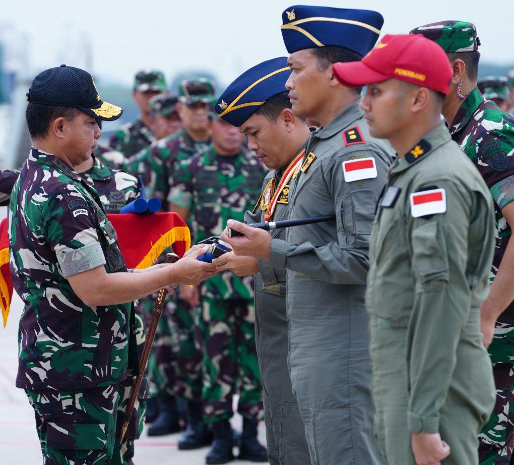 JAKARTA — Panglima TNI Jenderal TNI Agus Subiyanto memberikan penghargaan kepada 24 Personel TNI yang tergabung dalam operasi bantuan kemanusiaan bencana alam badai tropis “Kristine/Trami”, di wilayah Bicol Filiphina bertempat di Base Ops Halim Perdana Kusumah, (Senin, 11/11/2024)