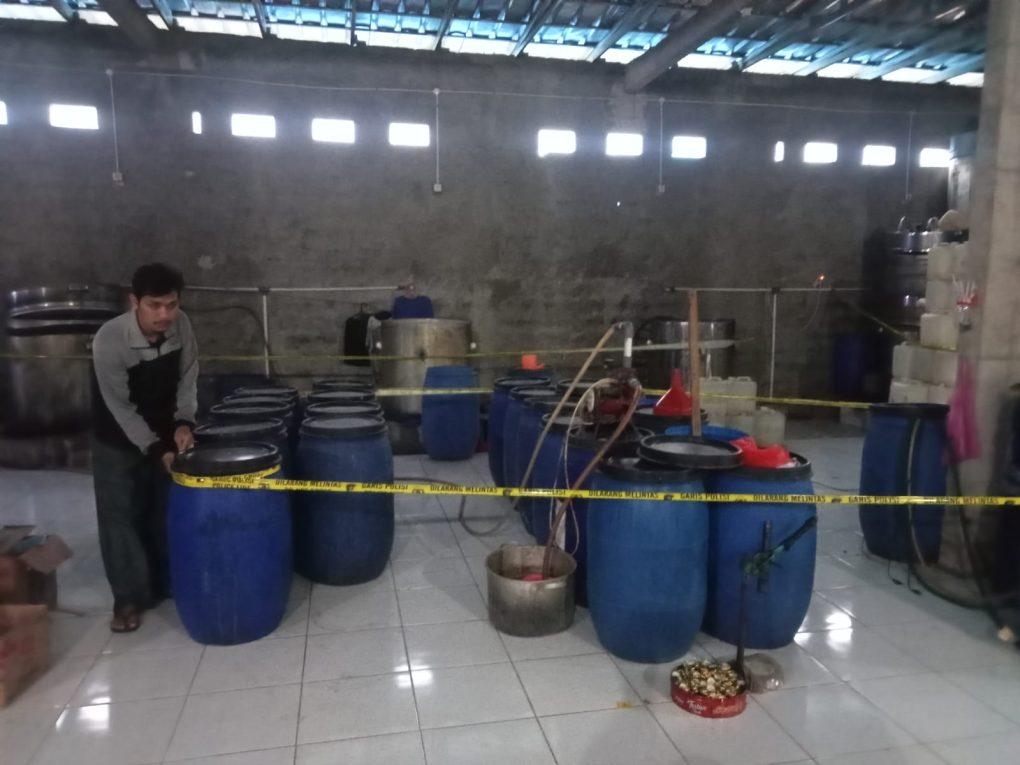 Polisi kemudian bergerak ke lokasi gudang yang beralamat di Jalan Eluka RT 07 RW 07, Kelurahan Bakti Jaya, Kecamatan Setu, kota Tangerang Selatan. Di lokasi tersebut, polisi mengamankan satu orang pelaku yang tengah membuat arak.