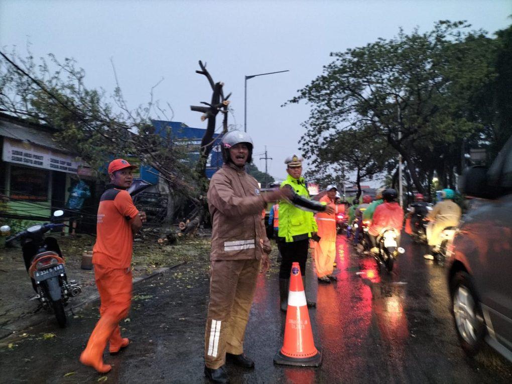 Pohon tumbang tersebut dilaporkan jatuh tepat di pinggir jalan, tanpa menutupi jalur kendaraan.