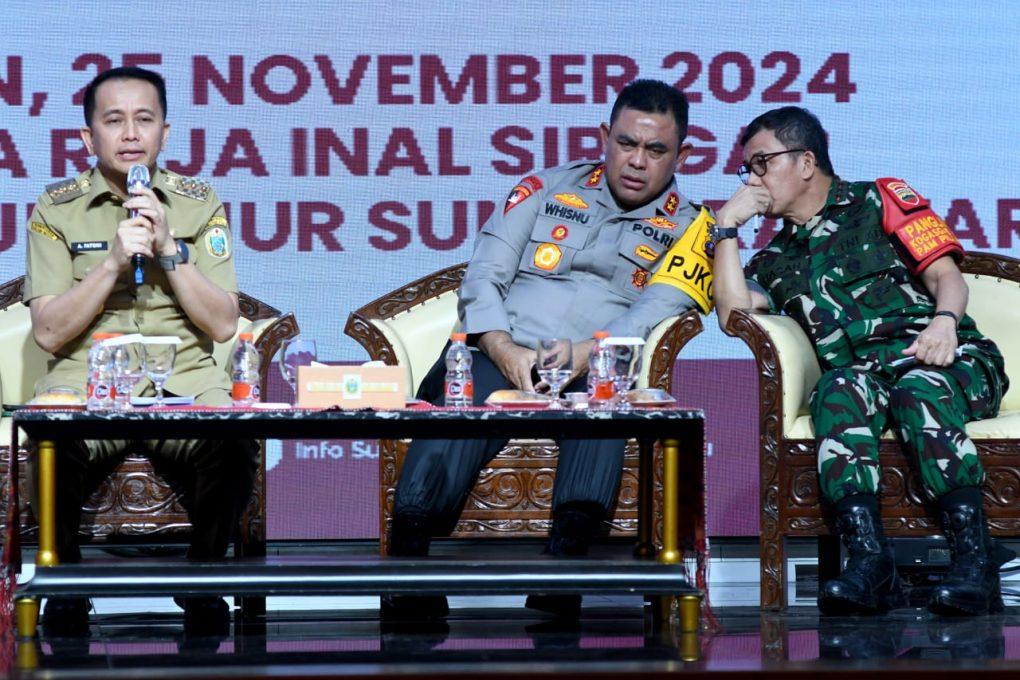 Pj Gubernur Sumatera Utara (Sumut) Agus Fatoni bersama Kapolda Sumut Irjen Wishnu Hermawan, Pangdam I BB Letjend Mochammad Hasan, serta Forum Koordinasi Pimpinan Daerah (Forkopimda) lainnya bersilaturahmi bersama insan pers dan dialog Pemilihan Kepala Daerah (Pilkada) damai, dengan tema “Dedikasi Pers Untuk Pilkada Sumut Berkualitas” di Aula Raja Inal Siregar, Kantor Gubernur, Jalan Diponegoro 30, Medan,