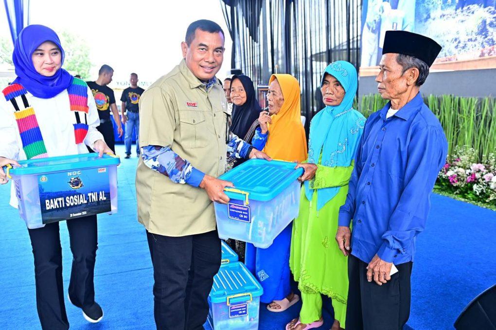 Jakarta, 29 Desember 2024 –— TNI AL berkomitmen dalam memberikan manfaat yang besar bagi masyarakat, kali ini Kepala Staf Angkatan Laut (Kasal) Laksamana TNI Dr. Muhammad Ali didampingi Ketua Umum Jalasenastri Ny. Fera Muhammad Ali melaksanakan Bakti Sosial bagi masyarakat di Desa Bojong Koneng bertempat di D’Marinos Sentul, Kabupaten Bogor. Minggu (29/12). Kegiatan yang digelar dalam rangka mempererat komunikasi dan silaturahmi para pimpinan TNI AL dengan masyarakat ini, Kasal bersama Wakasal Laksdya TNI Erwin S. Aldedharma, Kepala Staf Kepresidenan Letjen TNI (Purn) AM Putranto, Kabakamla Laksdya TNI Dr. Irvansyah, Pejabat Utama Mabesal, serta Pangkotama wilayah Jakarta membagikan sebanyak 100 paket sembako kepada masyarakat Desa Bojong Koneng RW 08 dan RW 11. Kasal dalam sambutannya menyampaikan bahwa kegiatan ini diharapkan dapat menjadi hal yang positif, serta dapat bermanfaat bagi masyarakat di sekitarnya. Pelaksanaan kegiatan Bakti Sosial ini merupakan implementasi TNI bersama rakyat sekaligus sebagai sarana membantu kesulitan masyarakat sekeliling sehingga tercapai kemanunggalan TNI dan rakyat dalam menjaga stabilitas keamanan negara. (Red).