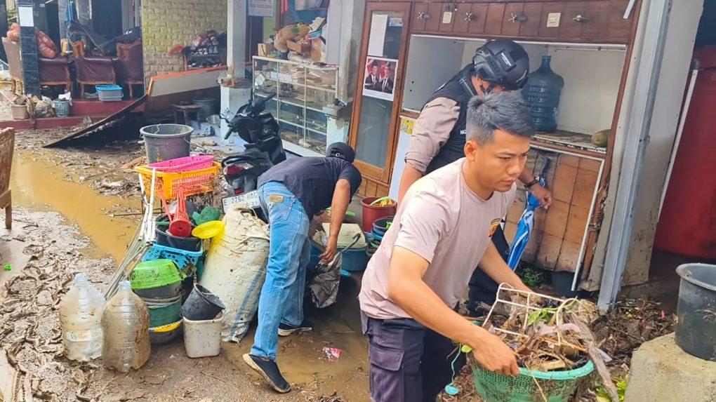 REPORTASE JAKARTA CIREBON — Polresta Cirebon telah melakukan monitoring terhadap kondisi banjir yang melanda Jalan Raya Sumber – Cirebon, dan melakukan bakti sosial korve bersih bersih rumah warga yang terdampak banjir tepatnya di Desa Kecomberan, Kecamatan Talun, Kabupaten Cirebon. Sabtu (18/01/2025). Banjir tersebut terjadi akibat luapan air dari sungai silayar yang tidak mampu menampung volume air yang besar akibat curah hujan tinggi, sehingga meluap ke jalan raya Sumber – Cirebon dan ke rumah warga. Dalam kegiatan tersebut dipimpin oleh Kapolsek Talun Polresta Cirebon AKP Ngatidja bersama Anggota yang melakukan pengaturan lalu lintas dan memberikan bantuan kepada beberapa pengendara sepeda motor yang terjebak dan mogok saat melintasi jalan yang terendam. Dan Pasca terjadinya banjir Polresta Cirebon langsung melakukan bakti sosial bersih bersih lumpur dan sisa sisa banjir di rumah warga yang terdampak banjir. Kapolsek Talun Polresta Cirebon AKP Ngatidja memastikan bahwa air sudah surut dan sudah berkoordinasi dengan pihak terkait untuk penanganan lebih lanjut guna mencegah hal serupa terulang kembali. “Saat ini air sudah surut dan kami bersinergi dengan pihak terkait dalam penanganan ini” ujar AKP Ngatidja Kapolresta Cirebon, Kombes Pol. Sumarni, S.I.K., S.H., M.H., menyampaikan bahwa kegiatan tersebut merupakan bentuk kepedulian Polresta Cirebon kepada masyarakat terdampak…