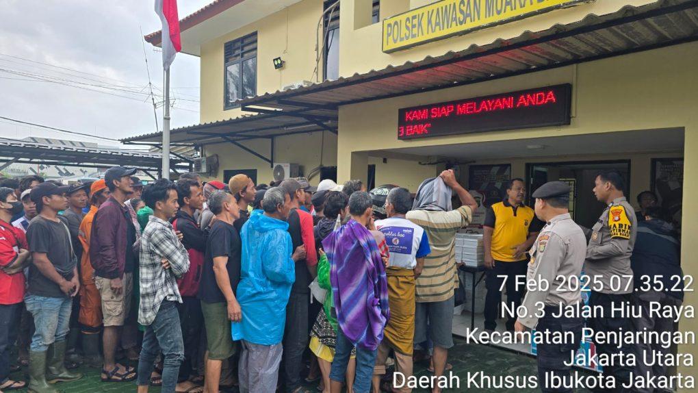 REPORTASE JAKARTAJAKARTA — Polsek Kawasan Muara Baru Polres Pelabuhan Tanjung Priok kembali lagi melaksanakan kegiatan Berbagi Makanan Untuk Sesama dalam Jumat Berkah dengan membagikan 300 paket makanan siap santap kepada pedagang ikan, ojeg, sopir, kernet, petugas kebersihan, buruh di Pelabuhan Muara Baru di Lapangan Polsek Kawasan Muara Baru, Jumat (7/02/2025).