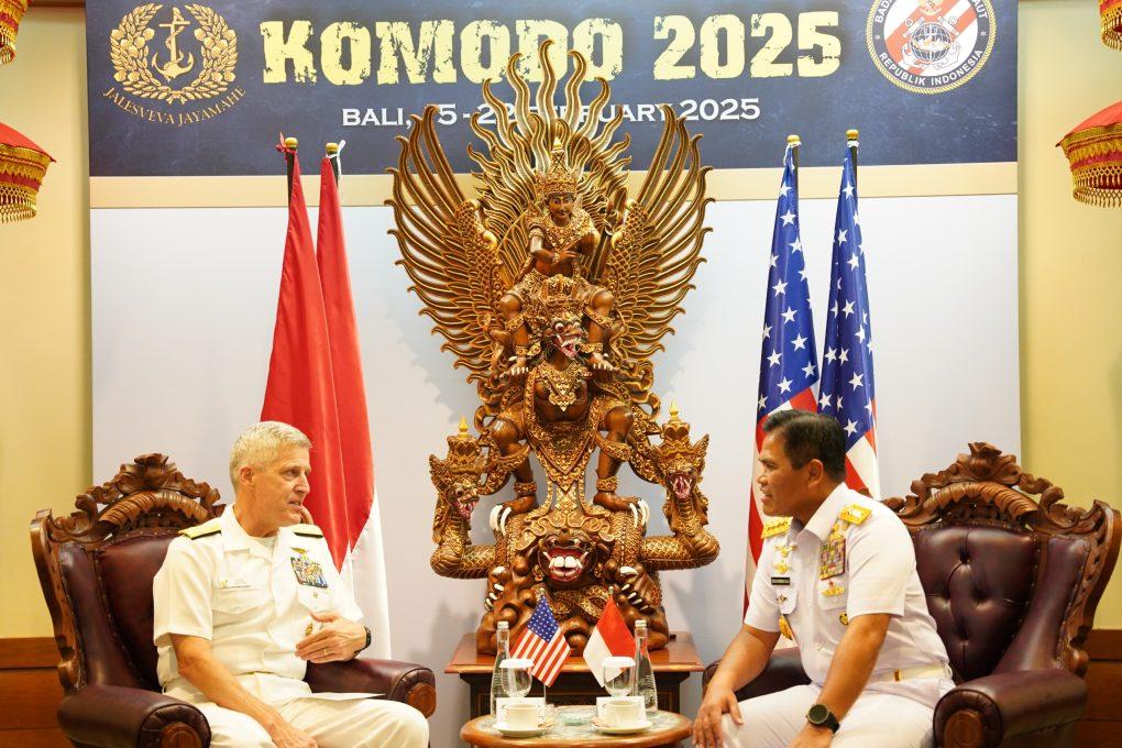Jakarta, 15 Februari 2025,— Satu hari menuju Opening Ceremony 5TH Multilateral Naval Exercise Komodo (MNEK) 2025 yang akan dilaksanakan di Pulau Dewata, Kepala Staf Angkatan Laut (Kasal) Laksamana TNI Dr. Muhammad Ali bersama 8 Chief Of Navy dan 13 Head Of Delegation dari negara peserta saling berdiskusi satu sama lain pada Bilateral Meeting yang dilaksanakan di Nusa Dua Beach Hotel, Klungkung, Bali. Sabtu (15/2). Empat pucuk pimpinan Angkatan Laut negara peserta yang mengikuti Bilateral Meeting tersebut diantaranya Chief Of Navy Australia VADM Mark Hammond AO, Chief Of Navy New Zealand RADM Garin Golding, Chief Of Navy Singapore RADM Sean Wat dan Chief Of Navy Thailand Admiral Jirapol Wongwit. Sementara itu, Head Of Delegation (HoD) yang terlibat dalam diskusi internasional ini meliputi HoD Korea Selatan RADM Kim Tae Hoon, HoD Russia Admiral Vladimir Vorobiev, HoD Jepang VADM Ishimaki Yoshiyasu serta HoD Amerika Serikat Admiral Stephen T. Koehler. Bilateral Meeting ini merupakan upaya diplomasi yang diwujudkan oleh TNI AL selaku tuan rumah 5TH MNEK 2025 dimana kegiatan ini bertujuan untuk meningkatkan hubungan kerja sama, capability dan capacity building, menciptakan interoperabilitas keamanan di Kawasan serta menjamin stabilitas regional dan internasional. Hal ini dapat wujudkan dengan keberadaan MNEK tahun ini dimana puluhan negara saling berdiskusi untuk sama-sama menentukan visi. Dalam kesempatan tersebut, Kasal mengucapkan terima kasih kepada negara peserta akan partisipasinya dalam latihan multinasional yang digelar oleh TNI AL ini. Masing-masing pimpinan Angkatan Laut negara sahabat ini juga membicarakan sejumlah kerjasama bidang pertahanan laut mulai dari keikutsertaan masing-masing negara pada penyelenggaraan event internasional seperti MNEK yang akan digelar pada besok, 16 Februari 2025. (Red).