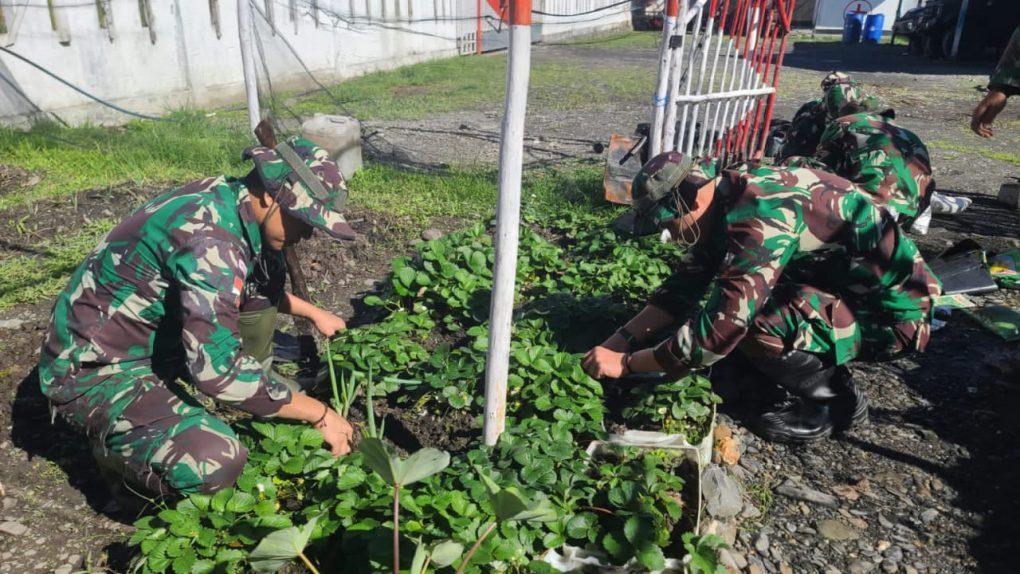 Dikatakannya, Pos Pruleme Satgas Pamtas Kewilayahan Yonif 715/Motuliato yang dipimpin Bintara Teritorial Satgas Serda Anton Reinhard beserta 10 personel Pos Pruleme memanfaatkan lahan kosong atau lahan tidur untuk ditanam berbagai macam sayur dan buah seperti Cabai, Daun Bawang, Stroberi dan sebagainya guna mewujudkan ketahanan pangan.