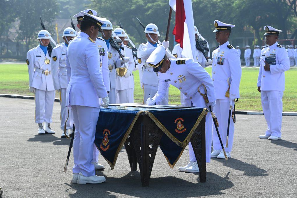 Jakarta, 21 Februari 2025,— Kepala Staf Angkatan Laut (Kasal) Laksamana TNI Dr. Muhammad Ali secara resmi melantik 201 Perwira Pertama lulusan Pendidikan Pembentukan Perwira (Diktukpa) TNI AL Angkatan 54 TA. 2024, bertempat di Lapangan Laut Maluku Komando Pembinaan Doktrin, Pendidikan dan Latihan TNI AL (Kodiklatal), Bumimoro Surabaya. Jumat (21/02). Sejak dibuka pendidikan Diktukpa TNI AL pada tanggal 3 Juli 2024 lalu, sebanyak 201 prajurit Bintara yang saat ini telah beralih strata menjadi Perwira TNI AL telah berhasil melalui proses perjuangan yang berat dan penuh tantangan. Diawali dengan proses seleksi yang sangat ketat dengan persaingan yang tinggi, setelah dinyatakan lulus mereka langsung digembleng untuk mengikuti pendidikan pembentukan di Pusat Latihan dan Pendidikan Dasar Kemiliteran (Puslatdiksarmil) Juanda, Sidoarjo. Perjuangan para Perwira dalam mendapatkan pangkat di pundaknya tidak hanya berakhir di Puslatdiksarmil. Selesai menjalani pendidikan pembentukan, para siswa Diktukpa masih harus melanjutkan pendidikan kejuruan sesuai dengan Korps masing-masing di Pusat Pendidikan jajaran Kodiklatal Bumimoro Surabaya. Adapun 201 Perwira TNI AL dengan pangkat Letnan Dua yang mengikuti Prasetya Perwira (Praspa) terdiri dari, Korps Pelaut 23 orang, Korps Teknik 10 orang, Korps Elektronika 13 orang (11 Pria dan 2 Wanita), Korps Suplai 14 orang (11 Pria dan 3 Wanita), Korps Marinir 36 orang, Korps Khusus 48 orang (39 Pria dan 9 Wanita), Korps Kesehatan 42 orang (30 Pria dan 12 Wanita), Korps Pomal 6 orang (5 Pria dan 1 Wanita), serta Korps Hukum 9 orang. Perwira lulusan terbaik di masing-masing Korps diraih oleh diraih oleh Letda Laut (P) Ariobugi Radya Prame Sworo pada Korps Pelaut, Letda Laut (T) Maulud Yarnunato dari Korps Teknik; Letda Laut (E) Hasan Abdussalam dari Korps Elektro; Letda Laut (S) Bambang Julianto dari Korps Suplai; Letda Mar Fuad Ikhsan Fauzi dari Korps Marinir; Letda Laut (KH) Muhammad Ichsan Nulhadi dari Korps Khusus; Letda Laut (K) Mirza Ahmad Gustian dari Korps Kesehatan; Letda Laut (PM) Ma’rub Ubaidilah dari Korps Pomal; dan Letda Laut (H) Mahesa Novario Irawan dari Korps Hukum. Dalam pelantikan tersebut juga ditampilkan berbagai atraksi diantaranya Kolone Senapan, Bela Diri Cadrik, Jalaraga, serta uniknya demonstrasi masak dan penyajian makanan secara langsung di atas kendaraan tempur oleh prajurit, dimana hasil masakannya dibagikan kepada ratusan siswa sekolah Yayasan Hang Tuah guna mendukung Program Pemerintah Makan Bergizi Gratis (MBG). Dalam kesempatan tersebut, Kasal menyampaikan bahwa Diktukpa di Kodiklatal disiapkan untuk menghasilkan lulusan yang profesional siap menghadapi tantangan tugas dengan integritas, kreativitas, loyalitas dan berdedikasi tinggi. Kepada para Perwira Diktukpa TNI AL Angkatan 54, Kasal menekankan “peranan pemimpin bukan hanya memberi perintah, tetapi mampu menginspirasi, melayani, dan berjalan di depan dengan keteladanan serta keberanian,” ungkapnya. Seusai kegiatan pelantikan, Kasal juga meresmikan program pendidikan Diploma III Kesehatan Politeknik Angkatan Laut (Poltekal), yg memiliki tiga program Pendidikan (Prodi) kesehatan yakni Konsentrasi Keperawatan, konsentrasi Farmasi dan Konsentrasi Kesehatan Gigi yang ditandai secara simbolis dengan penekanan sirine launching dan penandatanganan prasasti. (Red).
