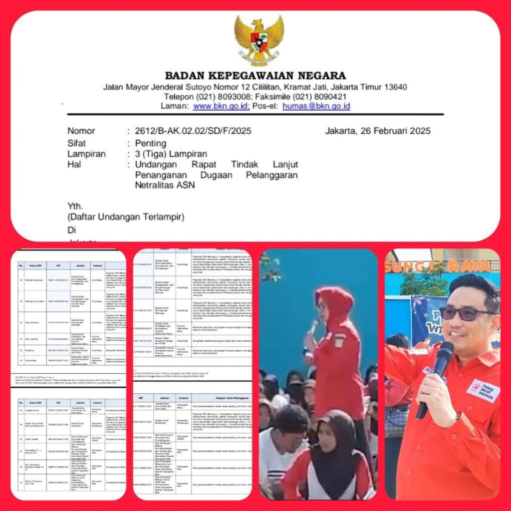 Manajemen ASN pada 26 Februari 2025, disebutkan bahwa pertemuan ini bertujuan untuk memastikan penegakan disiplin terhadap ASN yang melanggar ketentuan netralitas. Lampiran surat tersebut mencantumkan daftar lengkap 68 ASN yang terindikasi melakukan pelanggaran.