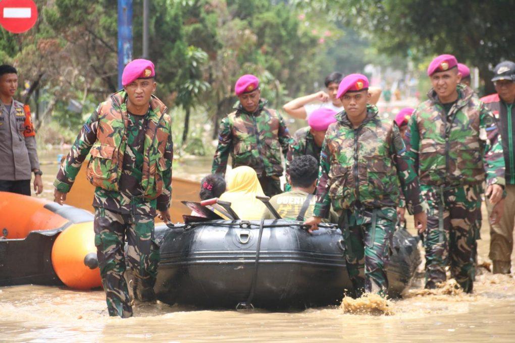 Jakarta, 5 Maret 2025,–– Memasuki hari kedua bencana banjir di daerah Jabodetabek, TNI AL masih menerjunkan Prajurit Korps Marinir untuk mengevakuasi warga dan membersihkan sisa-sisa lumpur dan kotoran limbah banjir yang masuk ke rumah-rumah masyarakat. Rabu (5/3). Meskipun perlahan kian surut, namun Prajurit Korps Marinir berusaha untuk mengevakuasi warga menggunakan perahu karet terutama anak-anak, wanita dan lansia ke posko-posko terdekat karena ketinggian banjir yang masih di atas mata kaki membuat mobilitas warga sangat terbatas. Sejak Selasa kemarin (04/03) sebanyak ratusan Prajurit Korps Marinir TNI AL yang tersebar di beberapa lokasi banjir meliputi Perumahan Pondok Gede Permai Bekasi, Kebon Pala Jakarta Timur, GPIB Menara Kasih Bekasi, Villa Nusa Indah Bekasi, hingga daerah Pekayon Bekasi Barat tepatnya di Perum Pekayon Jaya 2 Bekasi, berpacu dengan waktu dan kondisi dalam mengevakuasi warga yang terjebak di lokasi banjir untuk diungsikan menuju posko yang telah didirikan oleh BNPB. Selain mengevakuasi, Prajurit Korps Marinir juga memberikan bantuan makanan berupa nasi bungkus dan air mineral kepada warga terdampak banjir. Hingga kini, Prajurit Korps Marinir masih disiagakan di lokasi banjir sampai keadaan kembali normal dan warga bisa beraktivitas seperti semula. Respon cepat dari prajurit petarung Korps Marinir TNI AL dalam membantu proses evakuasi warga terdampak banjir di wilayah Bekasi ini tentunya selaras dengan instruksi Kepala Staf Angkatan Laut (Kasal) Laksamana TNI Dr. Muhammad Ali bahwa TNI AL akan terus hadir di tengah masyarakat tidak hanya dalam menjaga kedaulatan maritim, tetapi juga berperan aktif pada penanggulangan bencana alam. (Red).