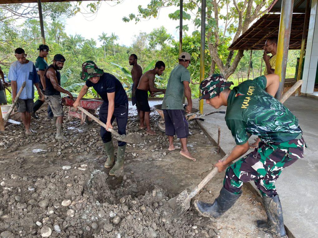REPORTASE JAKARTABoven Digoel – Membantu wujudkan tempat ibadah yang nyaman, personel Satgas Pamtas Yonif 126/KC Pos Niniate bersama masyarakat mengadakan gotong royong merenovasi lantai Gereja Kristus Raja Kampung Niniate, Distrik Niniate, Kab. Boven Digoel.