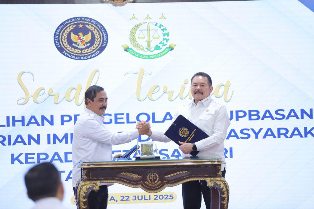 REPORTASE JAKARTAJAKARTA — Kejaksaan Republik Indonesia secara resmi melanjutkan proses pengalihan pengelolaan Rumah Penyimpanan Benda Sitaan Negara (Rupbasan) dari Kementerian Imigrasi dan Pemasyarakatan (Kemenimipas) Tahap kedua. Acara pengalihan ini dilaksanakan pada tanggal 22 Juli 2025 di Lantai 11 Gedung Utama Kejaksaan Agung.