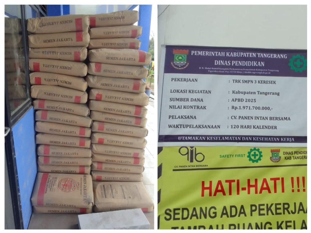 Proyek pembangunan Gedung sekolah(RTK)SMPN 3 Kresek,yang beralamat jalan raya kresek-mekar baru di duga ada kecurangan Proyek Dinas Pendidikan yang di tangani CV PANEN INTAN BERSAMA.
