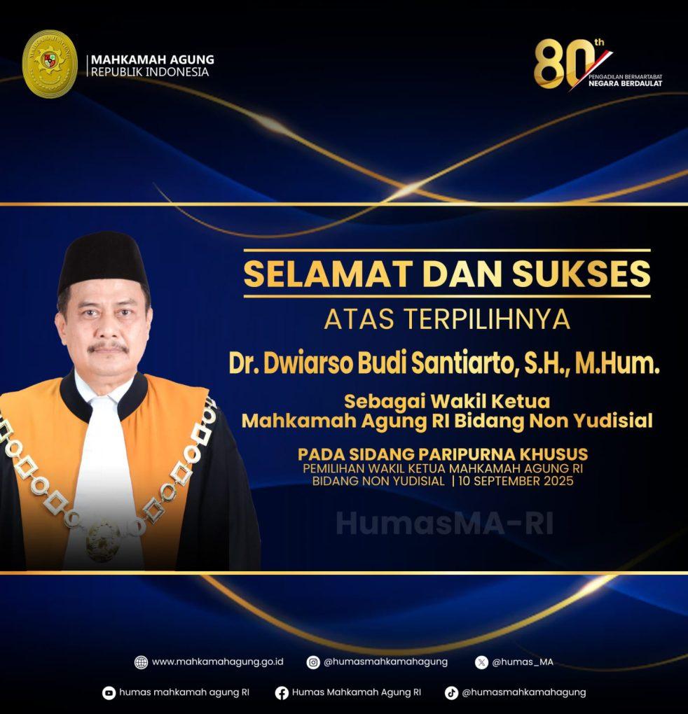 JAKARTA — Rabu,10 September 2025,  Proses demokrasi yang kental mewarnai jalannya pemilihan ini, di mana para calon dipilih langsung oleh para Hakim Agung, mencerminkan nilai-nilai luhur dalam sistem peradilan salahsatu agenda penting di lingkungan Mahkamah Agung Republik Indonesia (MA RI), yaitu pemilihan Wakil Ketua MA RI Bidang Non Yudisial.