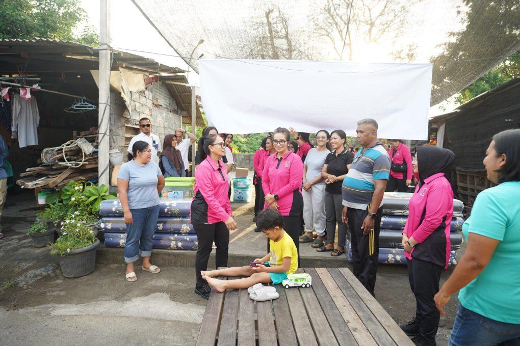 Pasca bencana banjir yang melanda wilayah Bali beberapa waktu lalu, Ketua Umum Bhayangkari, Ny. Juliati Sigit Prabowo berkesempatan mengunjungi tempat-tempat pengungsian guna menyalurkan Bantuan Sosial (Bansos) dari Seruni (Solidaritas Perempuan Untuk Indonesia) Kabinet Merah Putih kepada masyarakat yang terdampak, Senin (15/9/2025).