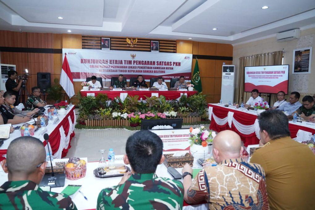 Kunjungan kerja dilanjutkan dengan pertemuan antara Tim Satgas PKH dan Forkopimda Provinsi Kepulauan Bangka Belitung di Kantor Kejaksaan Tinggi Kepulauan Bangka Belitung, membahas penyelesaian tata kelola pertambangan dengan menitikberatkan pada kepentingan negara serta kesejahteraan rakyat.