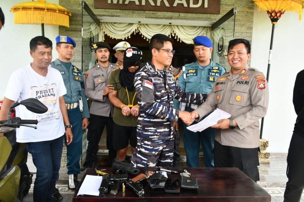 Danlanal Bali menegaskan bahwa penyerahan terduga tersangka dan barang bukti tersebut merupakan wujud sinergi yang solid antara TNI AL dan Polri dalam menegakkan hukum serta memberantas peredaran senjata api ilegal yang berpotensi menimbulkan gangguan keamanan dan ketertiban masyarakat. Selanjutnya proses diserahkan sepenuhnya kepada pihak kepolisian.