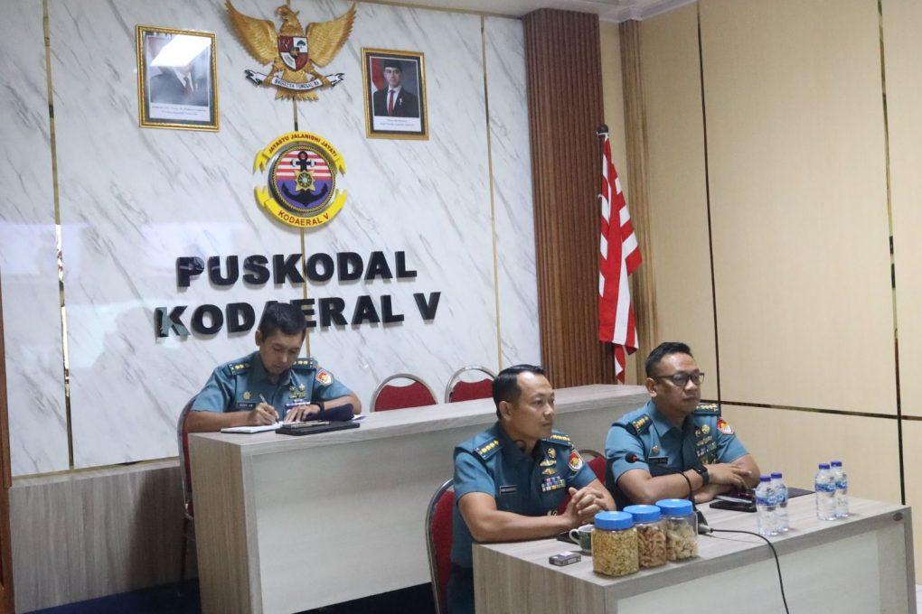 Dalam rangka menyatukan persepsi dan merumuskan langkah terbaik bagi kemajuan TNI AL, Komando Daerah Angkatan Laut (Kodaeral) V menghadiri acara diskusi tentang Pembentukan Satuan Siber Pada Tingkat Komando Utama (Kotama) TNI AL secara video conference (vicon) di Ruang Puskodal Kodaeral V Surabaya. Kamis (29/1/2026). Hadir dalam kegiatan tersebut Asintel Dankodaeral V Kolonel Laut (P) Libra Dian Prasetyawan Yonatan, Asops Dankodaeral V Kolonel Laut (P) Didik Kusyanto, dan Kadisinfolahta Kodaeral V Letkol Laut (E) Didik Antho Budiawan.